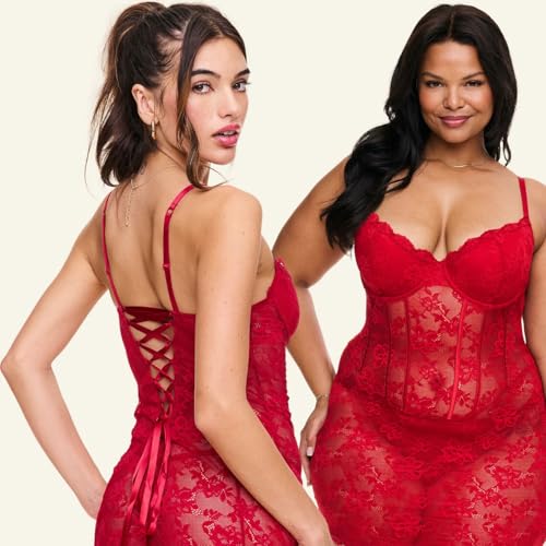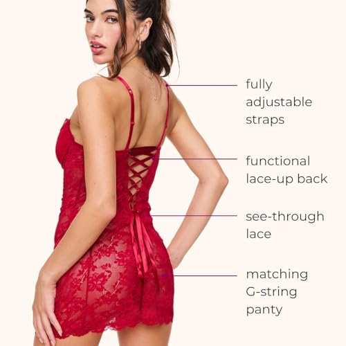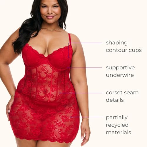Specification: Adore Me Brielle Babydoll Dress & G-String Thong – XS-4X Regular & Plus-Size Lace Lingerie Set, Underwire Corset Top & Thong